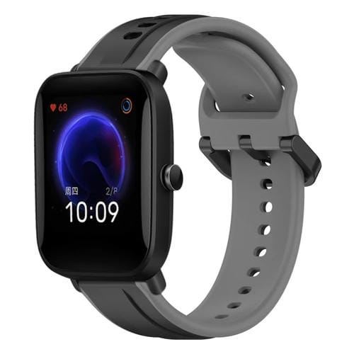 Correa de Reloj para Amazfit Pop 20mm Convex Loop Silicona Dos Colores (Negro + Gris)