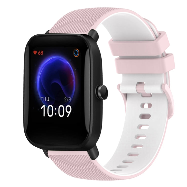 Correa de Reloj Amazfit Pop 20mm Silicona Dos Colores a Cuadros (Rosa + Blanco)