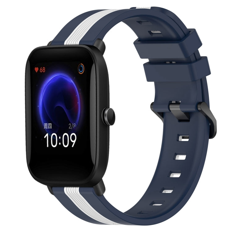 Correa de Reloj para Amazfit Pop 20mm Silicona Dos Colores Vertical (Azul + Blanco)