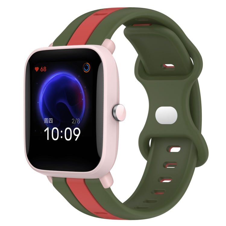 Correa de Reloj Amazfit Pop 20mm Silicona Hebilla de Mariposa Dos Colores (Rojo + Verde Militar)
