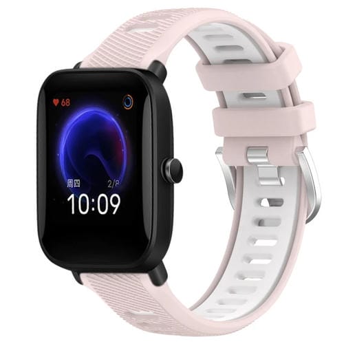 Correa de Reloj Amazfit Pop 22mm silicona textura cruzada con hebilla de acero (Rosa + Blanco)