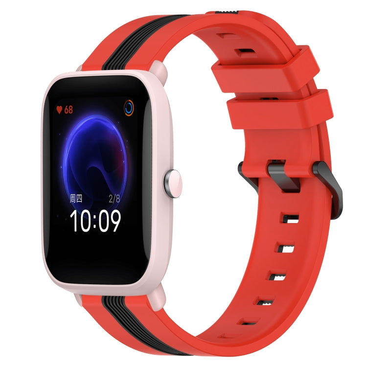 Correa de Reloj Amazfit Pop Pro 20mm Silicona Dos Colores Vertical (Rojo + Negro)