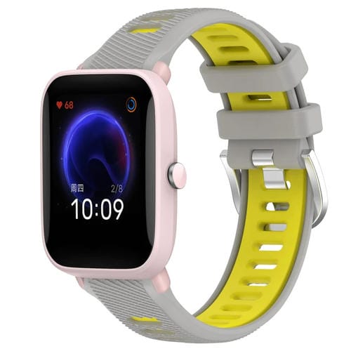 Correa de Reloj Amazfit Pop Pro 22mm Textura Cruzada Silicona con Hebilla de Acero (Gris + Amarillo)