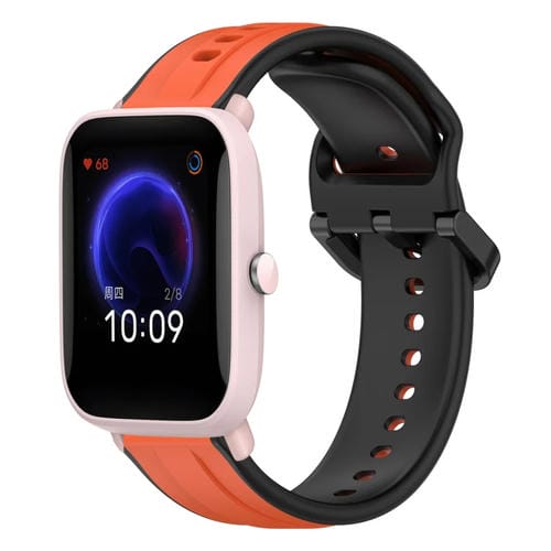 Correa de Reloj Amazfit Pop Pro Silicona Dos Colores Bucle Convexo 20mm (Naranja + Negro)