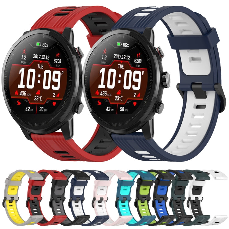 Correa de Silicona para Amazfit Stratos 22mm Patrón Vertical Dos Colores (Azul + Pato de Agua)