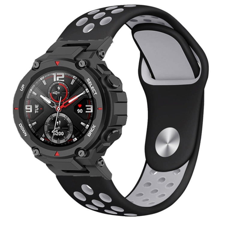 Correa de Reloj Amazfit T-Rex 2 Silicona Dos Colores Agujeros Hebilla Inversa (Gris Negro)