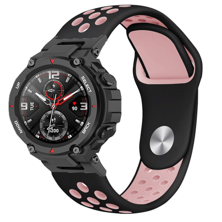 Correa de Reloj para Amazfit T-Rex 2 Silicona Dos Colores Agujeros Hebilla Inversa (Negro Rosa)