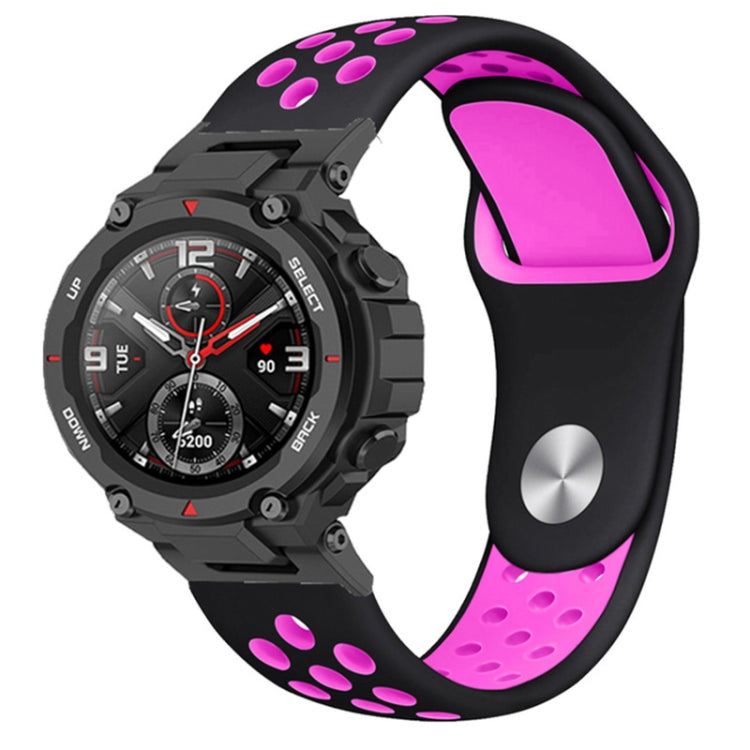 Correa de Reloj Amazfit T-Rex 2 silicona dos colores con agujeros y hebilla inversa (Negro, Rosa, Rojo)