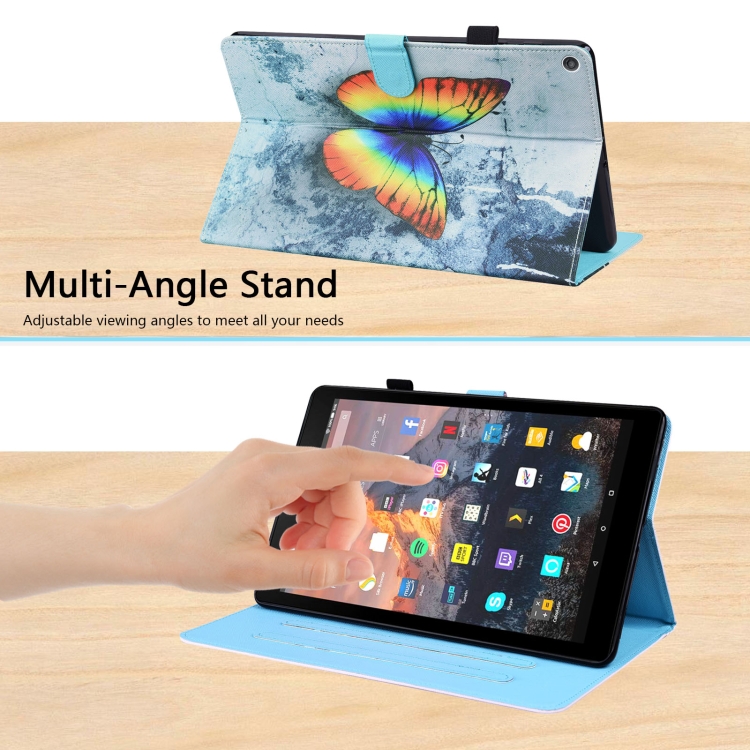 Funda Cuero Amazon Fire HD 10 (2019) Patrón Animales Soporte Tarjetas (Mariposa)