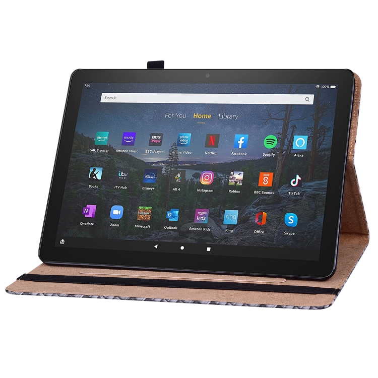 Funda inteligente de cuero tejido para Amazon Kindle Fire HD10 (2021) y HD10 Plus (2021) (Negro)