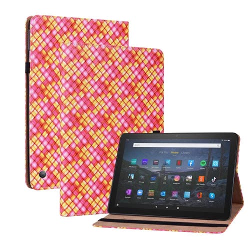 Funda inteligente para Amazon Kindle Fire HD10 2021 y HD10 Plus 2021 de cuero tejido (Rose Rojo)