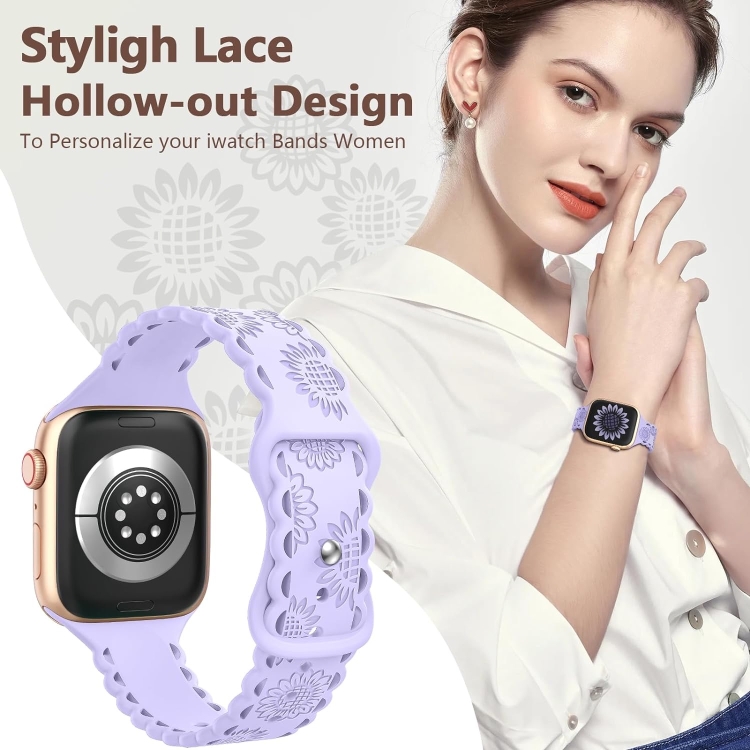 Correa para Apple Watch SE 2023 de Silicona con Relieve de Girasol y Encaje 40mm (Púrpura Lavanda)