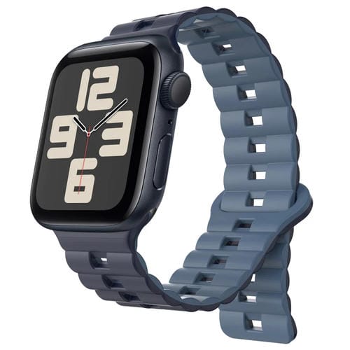 Correa para Apple Watch Se 2023 de Silicona Magnética Dos Colores con Hebilla Inversa 44mm (Azul Oscuro + Azul Claro)