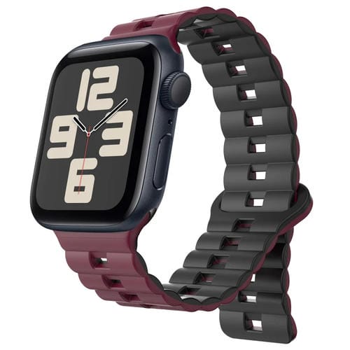 Correa de Silicona Magnética para Apple Watch Se 2023 44mm (Rojo Vino + Negro)