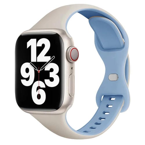 Correa de Silicona para Apple Watch Series 7 41mm con Hebilla de Mariposa Delgada Dos Colores (Azul Niebla Blanca)