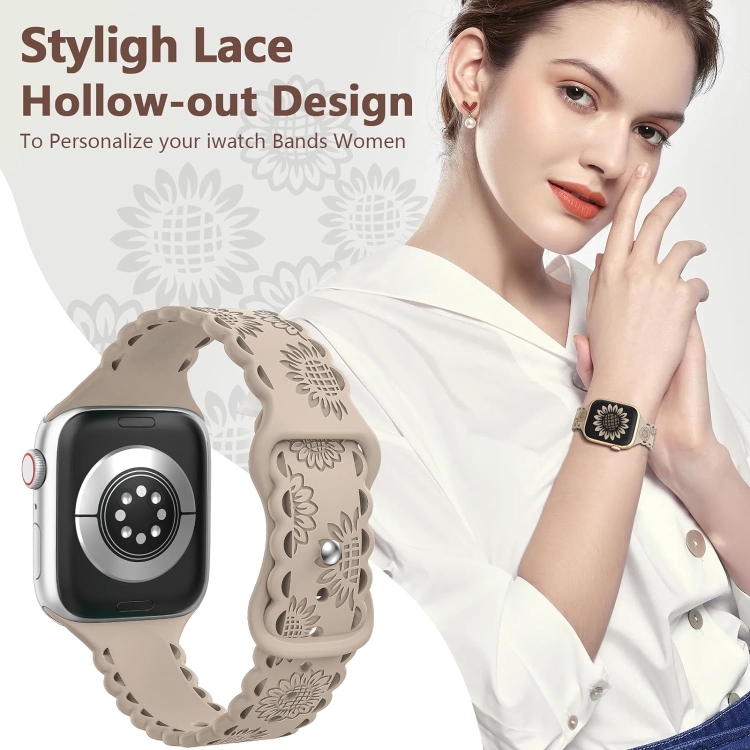 Correa de Silicona para Apple Watch Series 7 41mm con Relieve de Girasol (Té con Leche)