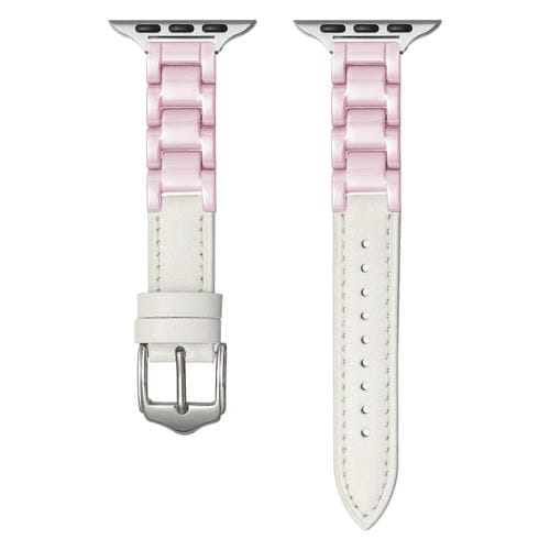 Correa de Cuero para Apple Watch Series 8 45mm con Hebilla Cerámica (Blanco Rosa Plateada)