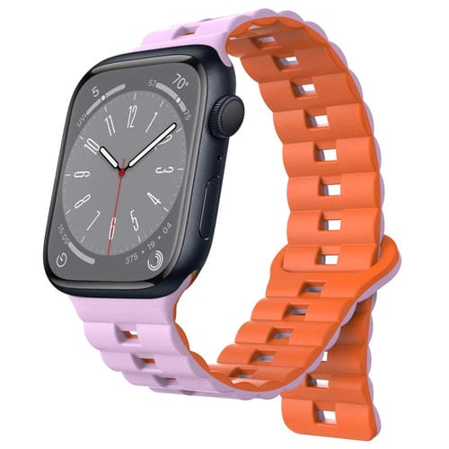 Correa de Silicona Magnética para Apple Watch Series 8 45mm (Púrpura + Naranja)