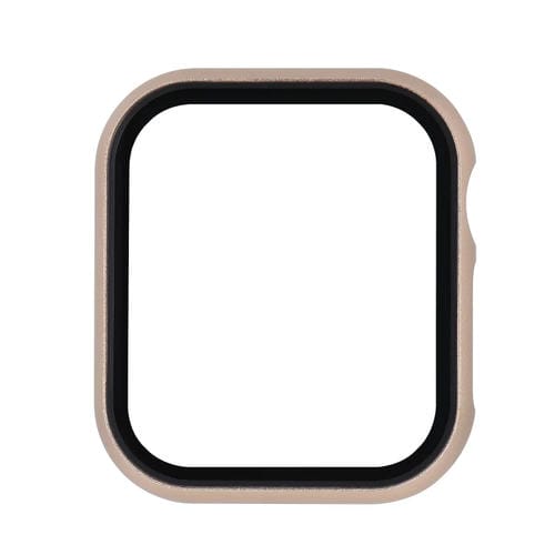 Marco de Metal + Estuche Protector de Vidrio Templado para Apple Watch Series 8 y 7 41mm (Oro)