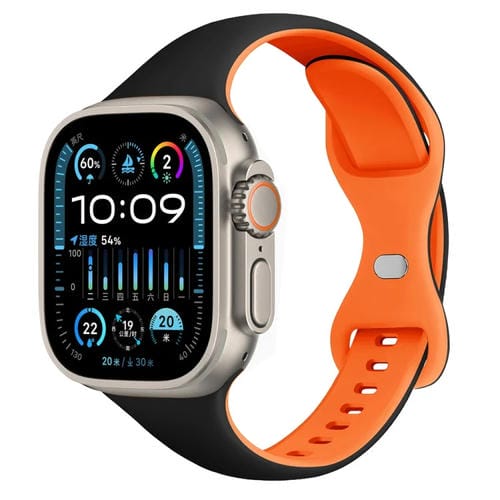 Correa de Silicona para Apple Watch Ultra 2 49mm con Hebilla de Mariposa Dos Colores (Negro Naranja)
