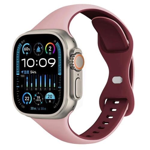 Correa de Silicona para Apple Watch Ultra 2 49mm con Hebilla de Mariposa Delgada Dos Colores (Rojo Vino Rosa)