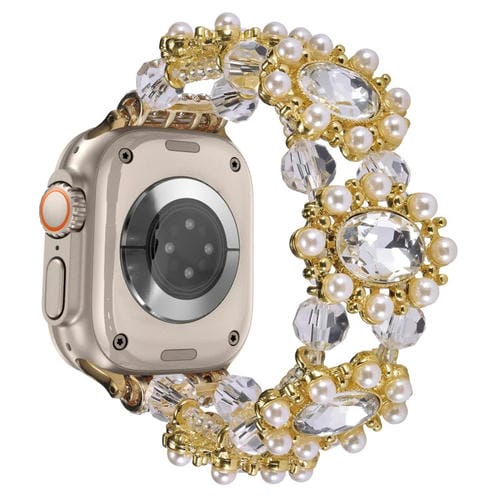 Correa para Apple Watch Ultra 49mm con Pulsera de Piedras Preciosas y Perlas (Dorado)