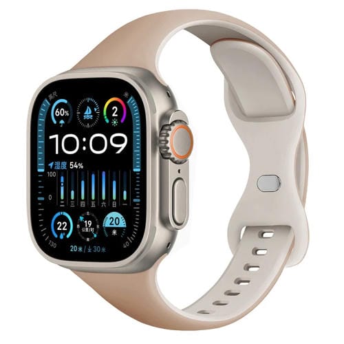 Correa de Silicona para Apple Watch Ultra 49mm con Hebilla de Mariposa Delgada de Dos Colores (Té con Leche, Blanco Roca)