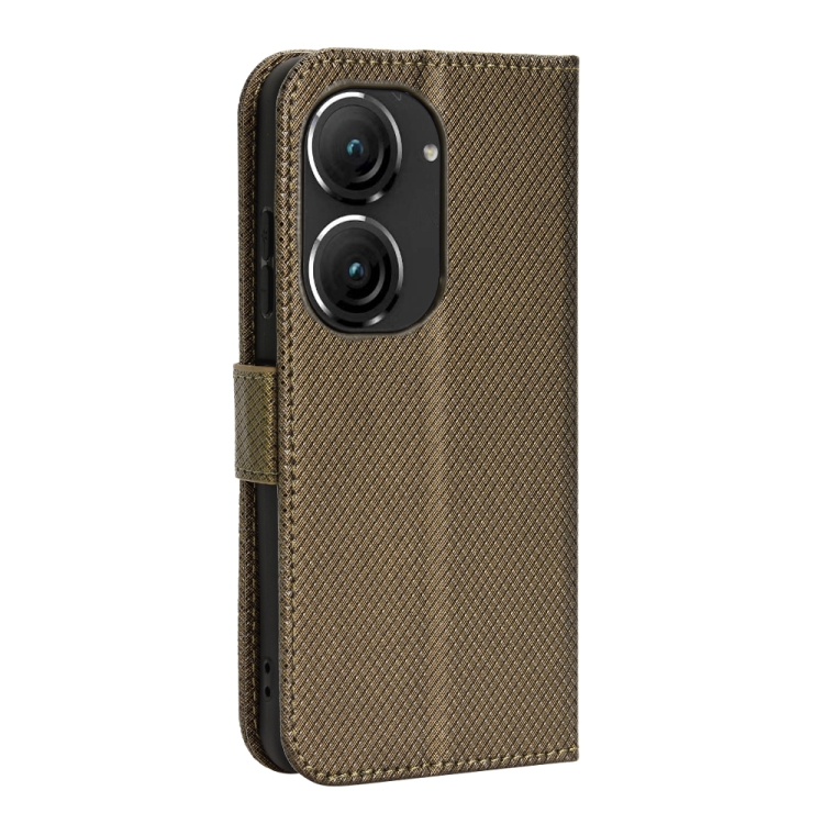 Caja de Teléfono para Asus Zenfone 10 y 9 de Cuero con Textura de Diamante (Marrón)