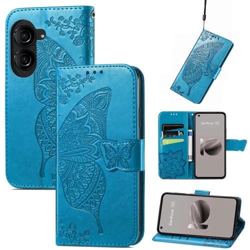 Funda de Cuero Asus Zenfone 10 Butterfly Love Flower en Relieve para Teléfono (Azul)