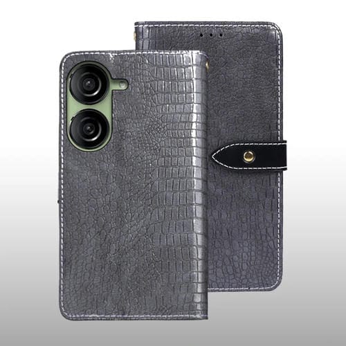 Funda para Asus Zenfone 10 Idewei de Cuero con Textura de Cocodrilo (Gris)