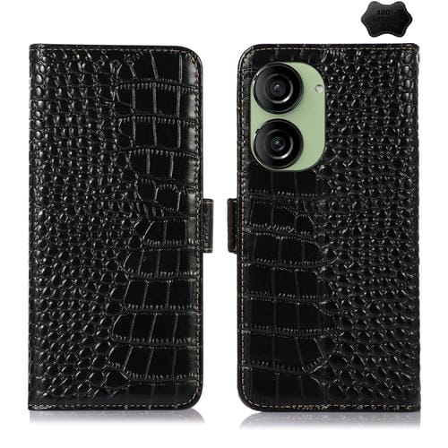 Estuche para Asus Zenfone 10 y Zenfone 9 de Cuero de Vaca con Capa Superior de Cocodrilo (Negro)