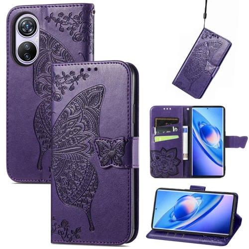 Funda de Cuero para BlackView A200 Pro Butterfly Love Flower en Relieve (Púrpura)