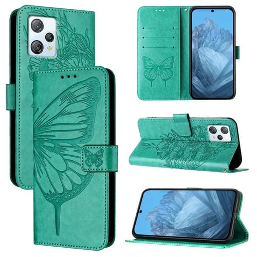 Funda de Cuero para BlackView A53 con Mariposa en Relieve (Verde)