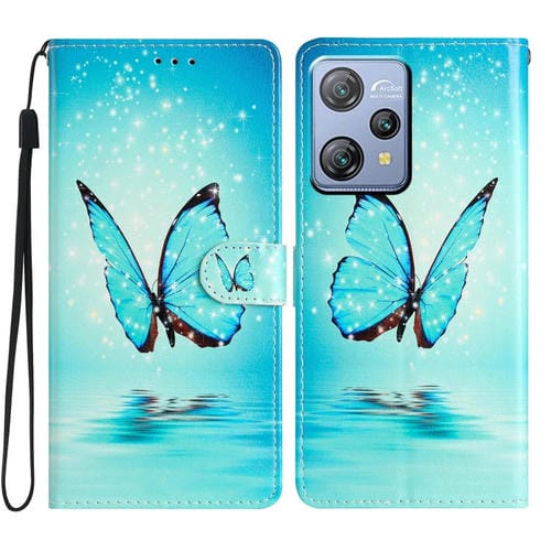 Funda de Cuero para BlackView A53 Pro con Dibujo Coloreado (Mariposa Azul)