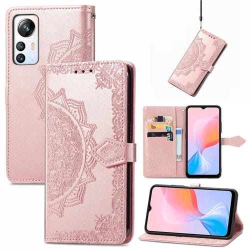 Funda de Cuero En Relieve Mandala Flower para BlackView A85 (Oro Rosa)