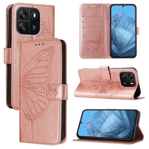 Funda de Cuero para BlackView Wave 6C con Mariposa en Relieve (Oro Rosa)