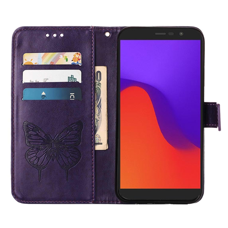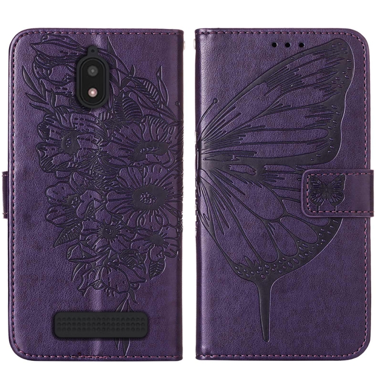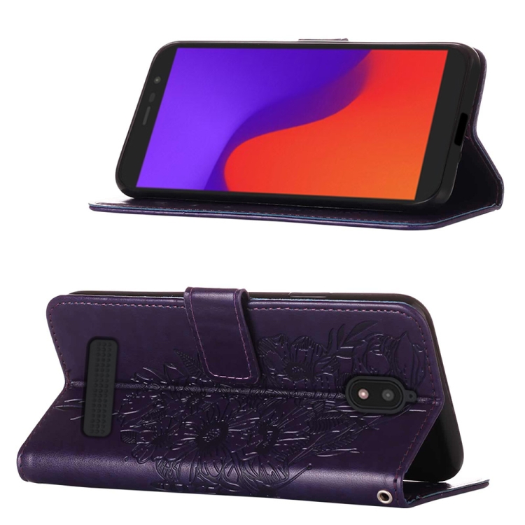 Estuche para BLU View 2 2022 / 2020 de Cuero con Tapa Mariposa En Relieve (Púrpura Oscuro)