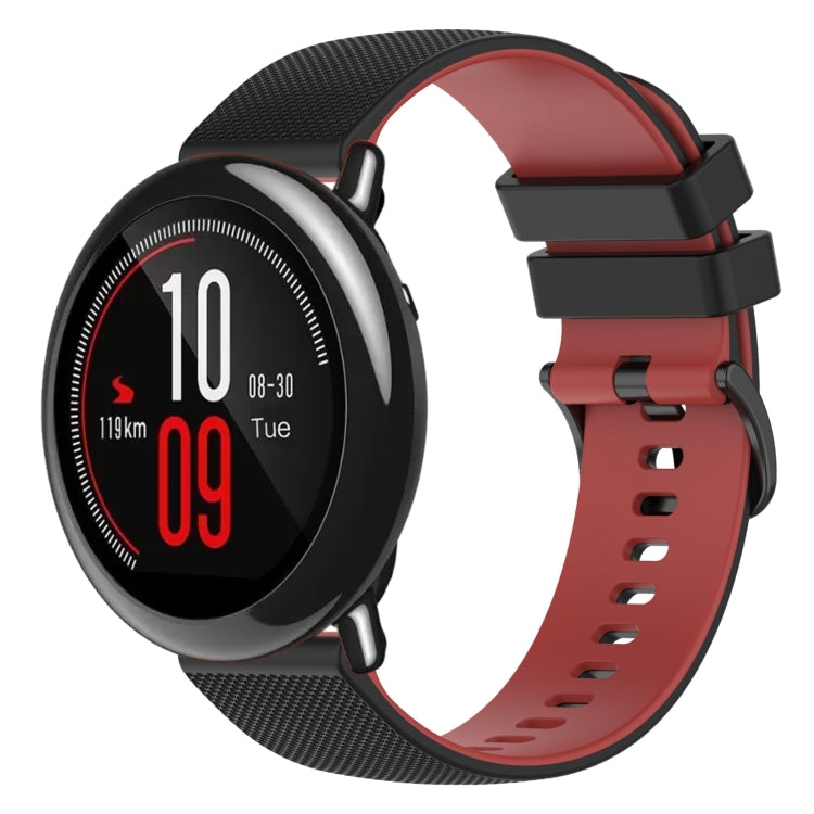 Correa de Silicona para Reloj Amazfit Pace 22mm Dos Colores a Cuadros (Negro + Rojo)