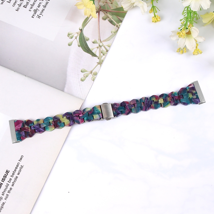 Correa de Reloj para Fitbit Versa 4 y Sense 2 Resina Rombo Universal (Flor Verde Púrpura)