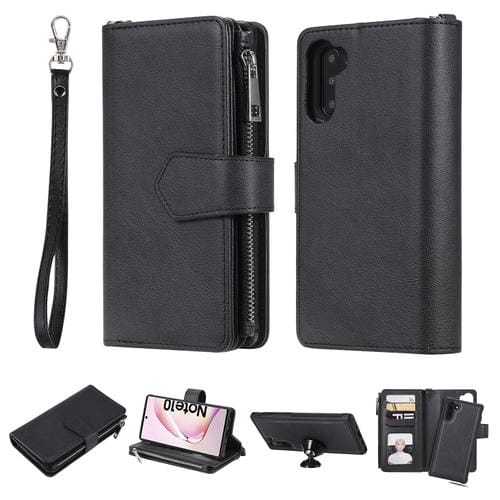 Estuche Protector 2 en 1 para Galaxy Note 10 con Cremallera, Ranuras para Tarjetas, Soporte y Función Billetera (Negro)
