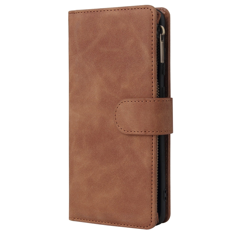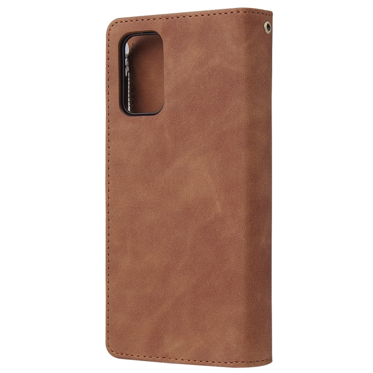 Estuche de Cuero para Galaxy S20 con Tapa Horizontal Multifuncional, Ranura para Tarjeta, Soporte, Billetera con Cremallera y Marco de Fotos (Marrón)