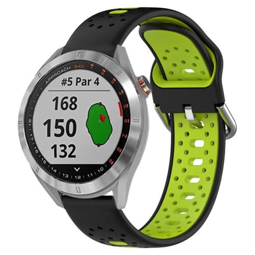 Correa de Reloj para Garmin Approach S40 Silicona Bicolor Transpirable 20mm (Negro + Verde Lima)