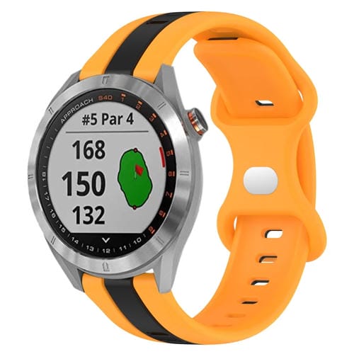 Correa de Reloj para Garmin Approach S40 Silicona Dos Colores con Hebilla de Mariposa 20mm (Negro + Amarillo)
