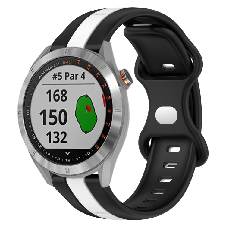 Correa de Reloj Garmin Approach S40 Silicona Dos Colores Hebilla Mariposa 20mm (Negro + Blanco)
