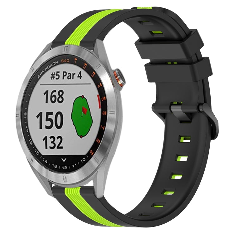 Correa de Reloj Garmin Approach S40 silicona dos colores vertical 20mm (Negro + Verde Lima)
