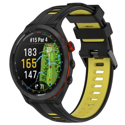 Correa de Silicona para Garmin Approach S70 47mm Sports (Negro + Amarillo)