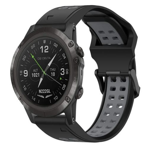 Correa de Silicona para Garmin D2 Delta Px 26mm con Hebilla Inversa Dos Colores (Negro + Gris)