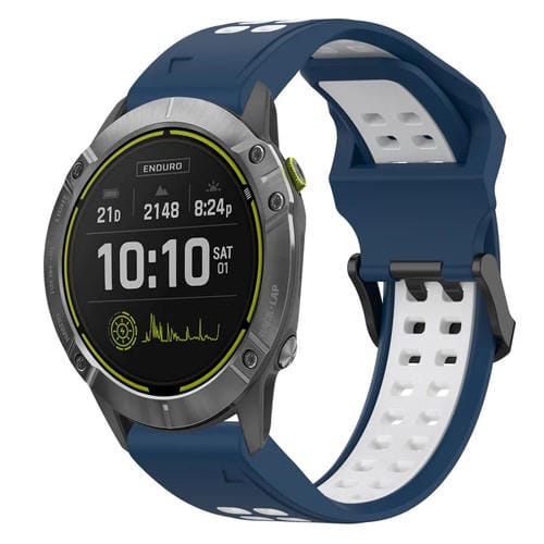 Correa de Reloj para Garmin Enduro 26mm Silicona con Hebilla Inversa Dos Colores (Azul + Blanco)