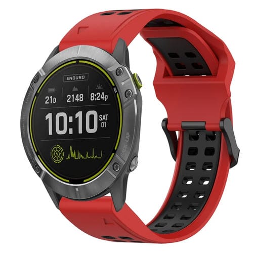Correa de Reloj para Garmin Enduro 26mm Silicona con Hebilla Inversa (Rojo + Negro)