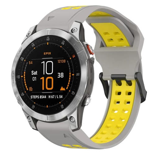 Correa de Silicona para Garmin Epix Gen 2 22mm con Hebilla Inversa Dos Colores (Gris + Amarillo)